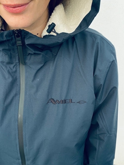 Broderie coeur sur parka écoreponsable sherpa pour AMEL