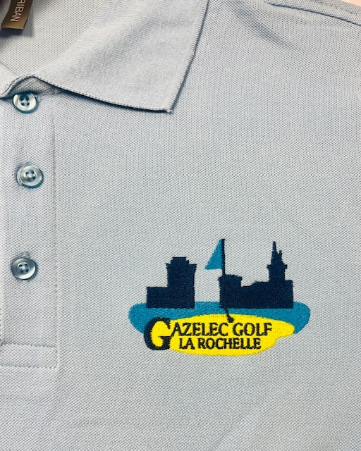 Broderie coeur pour les polos de Gazelec Golf La Rochelle.